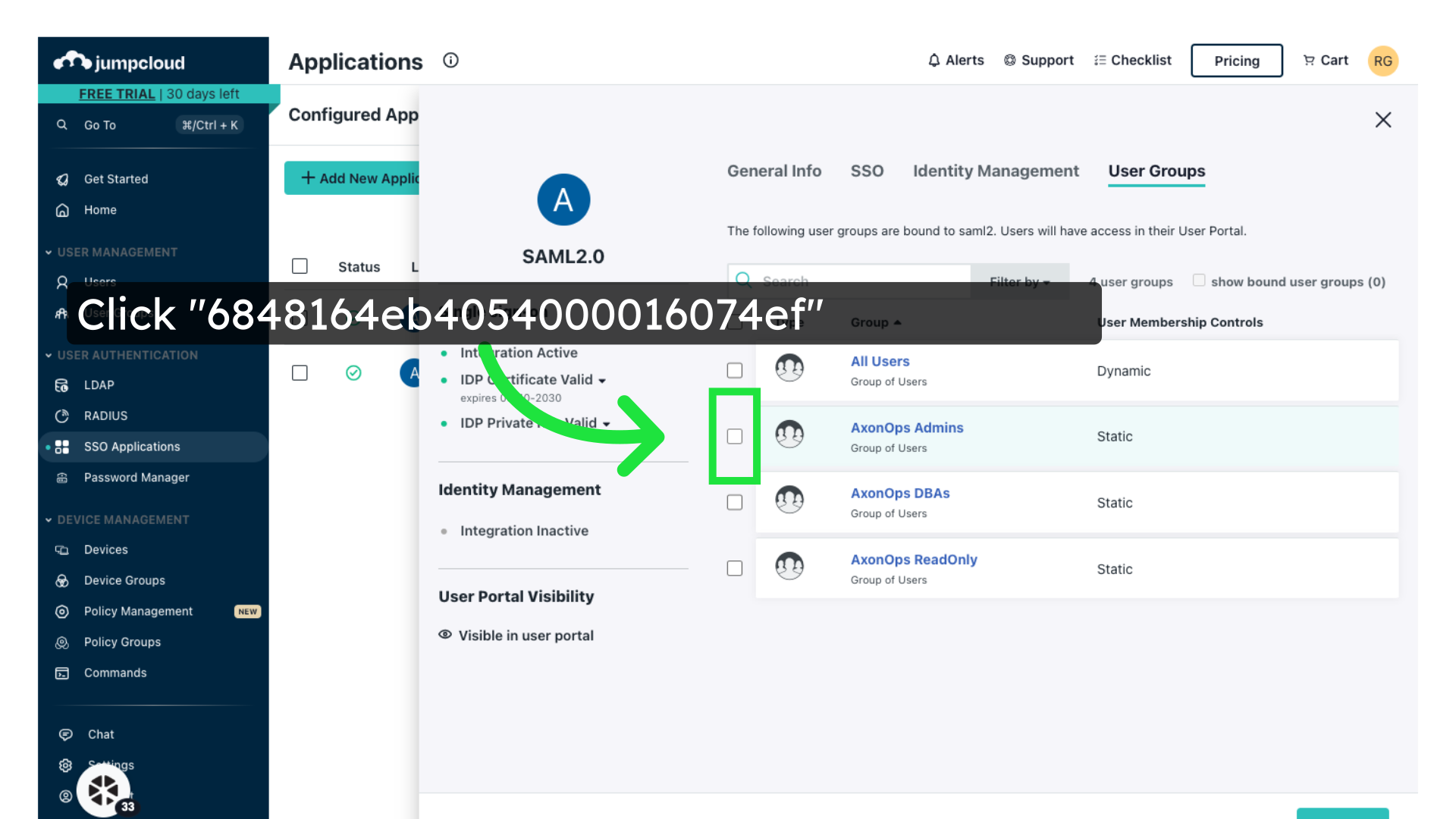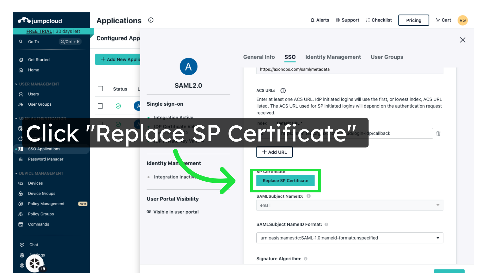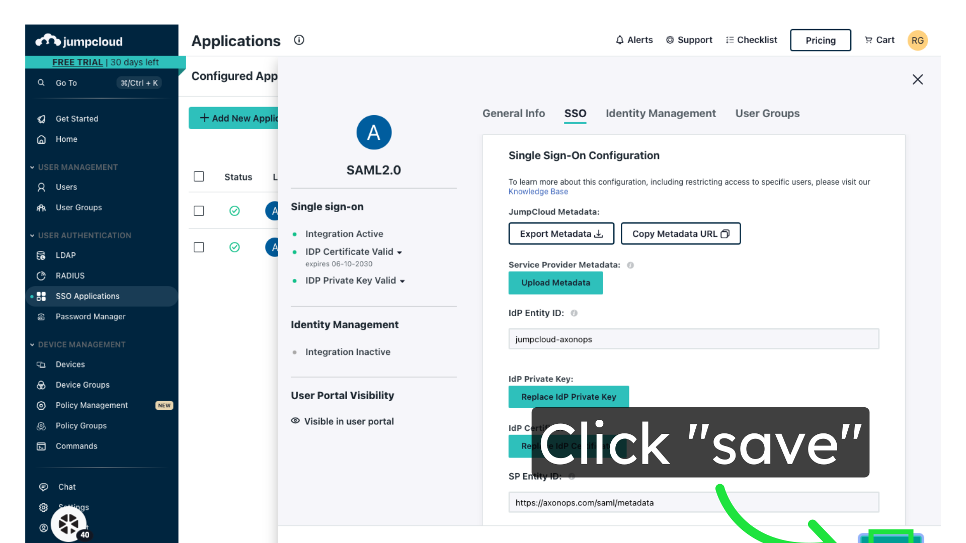 Export XML metadata from JumpCloud. You will need this to configure AxonOps.