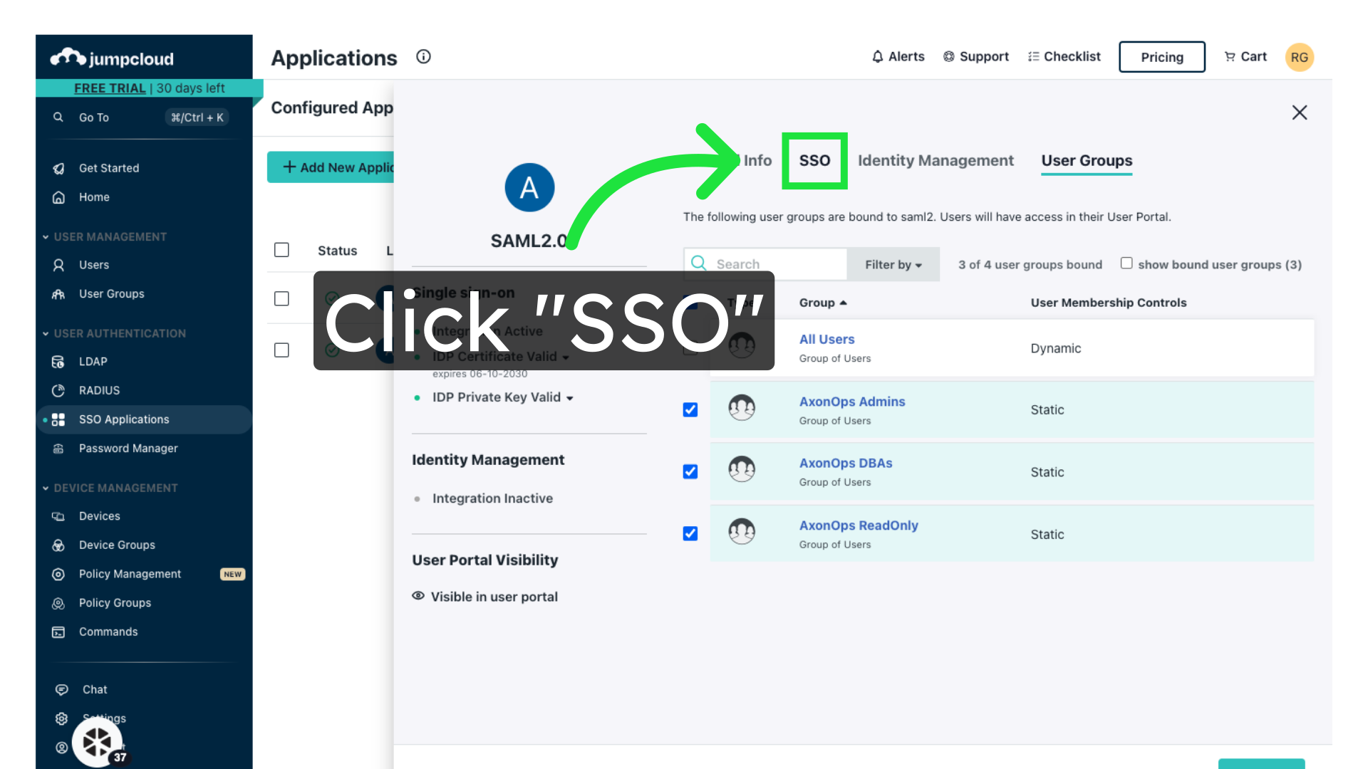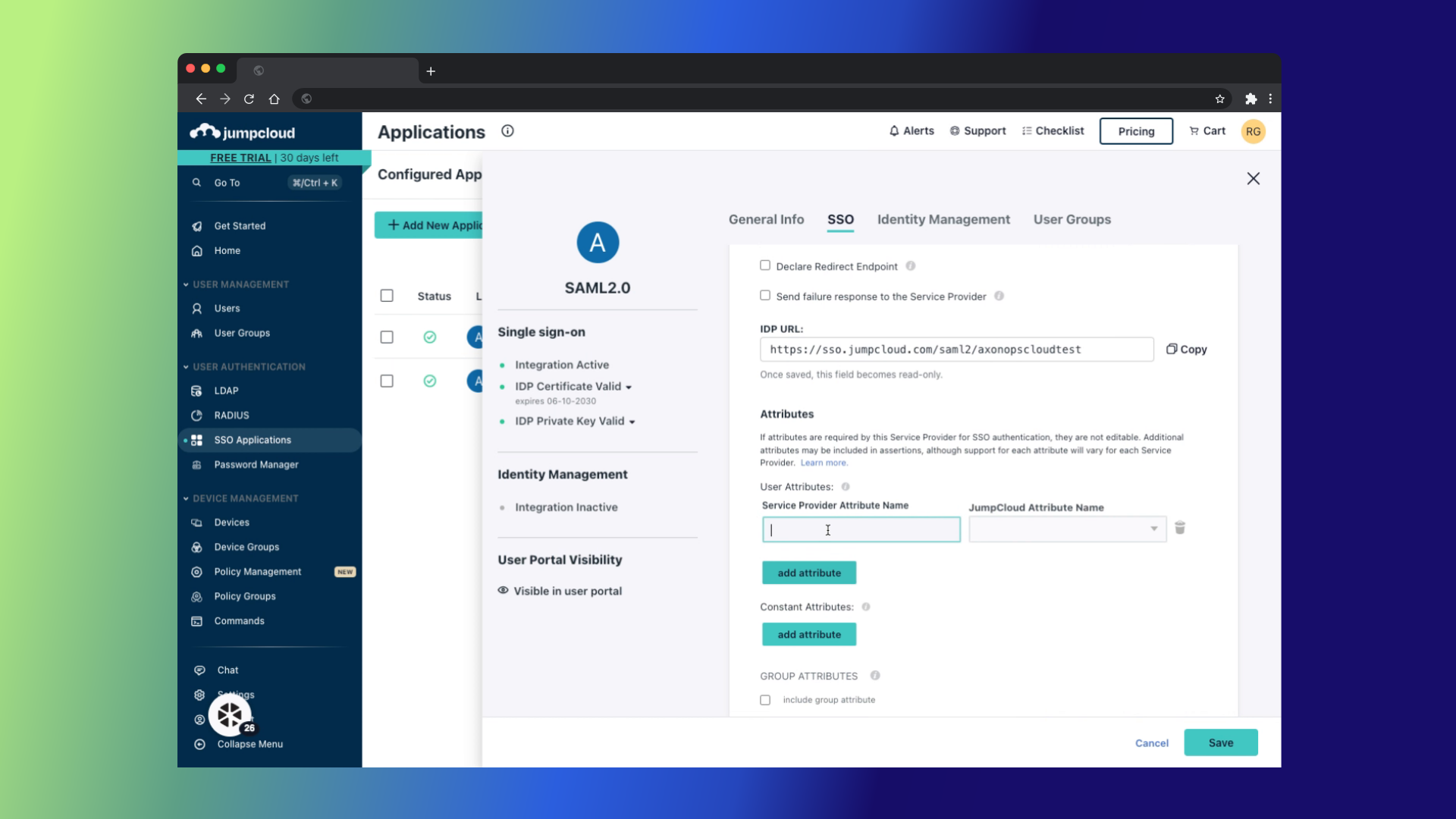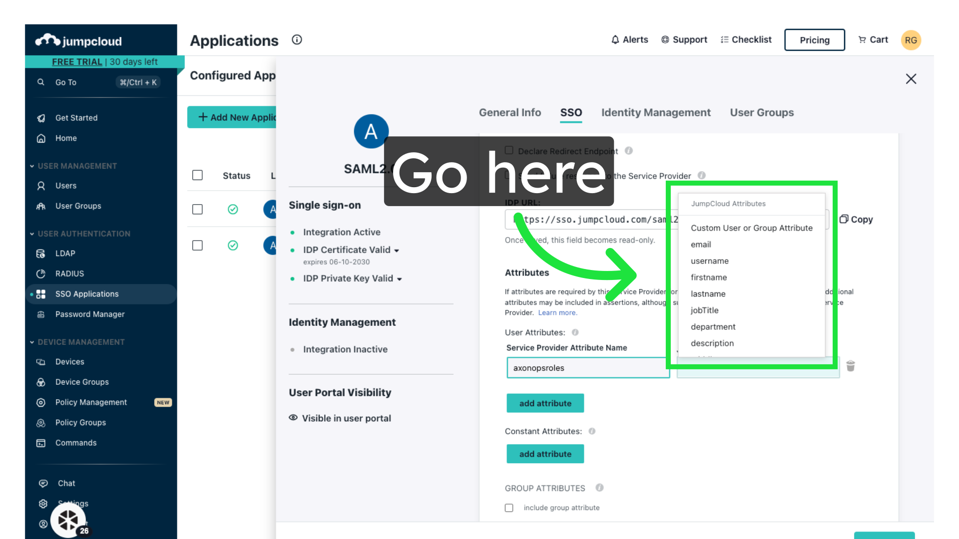 Export XML metadata from JumpCloud. You will need this to configure AxonOps.