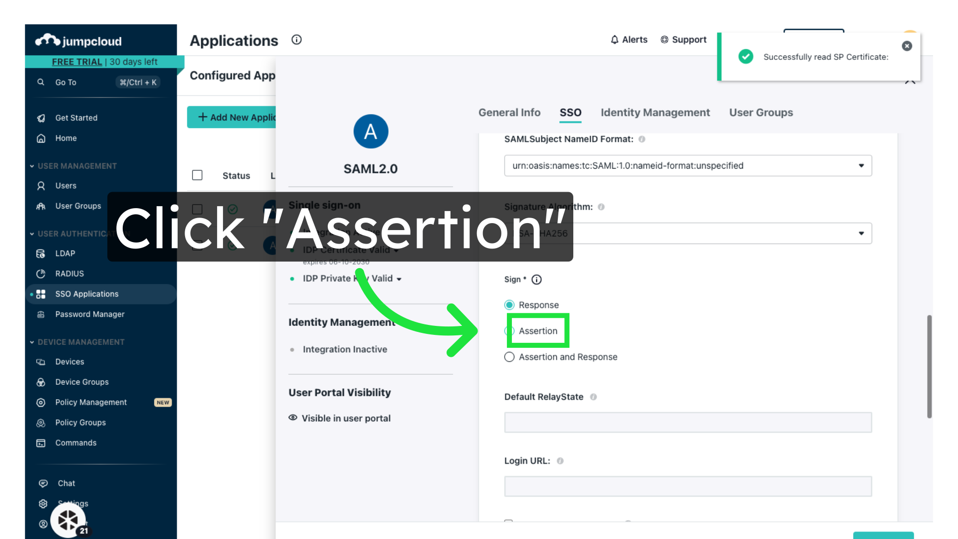 Under the Sign option, select Assertion