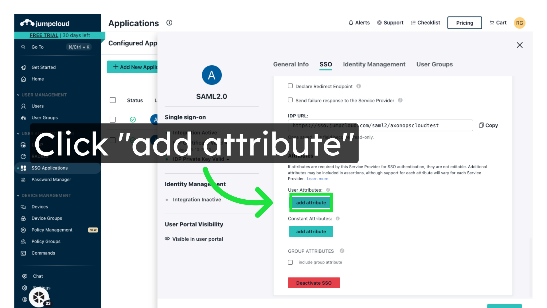 Under User Attributes, click "add attribute"