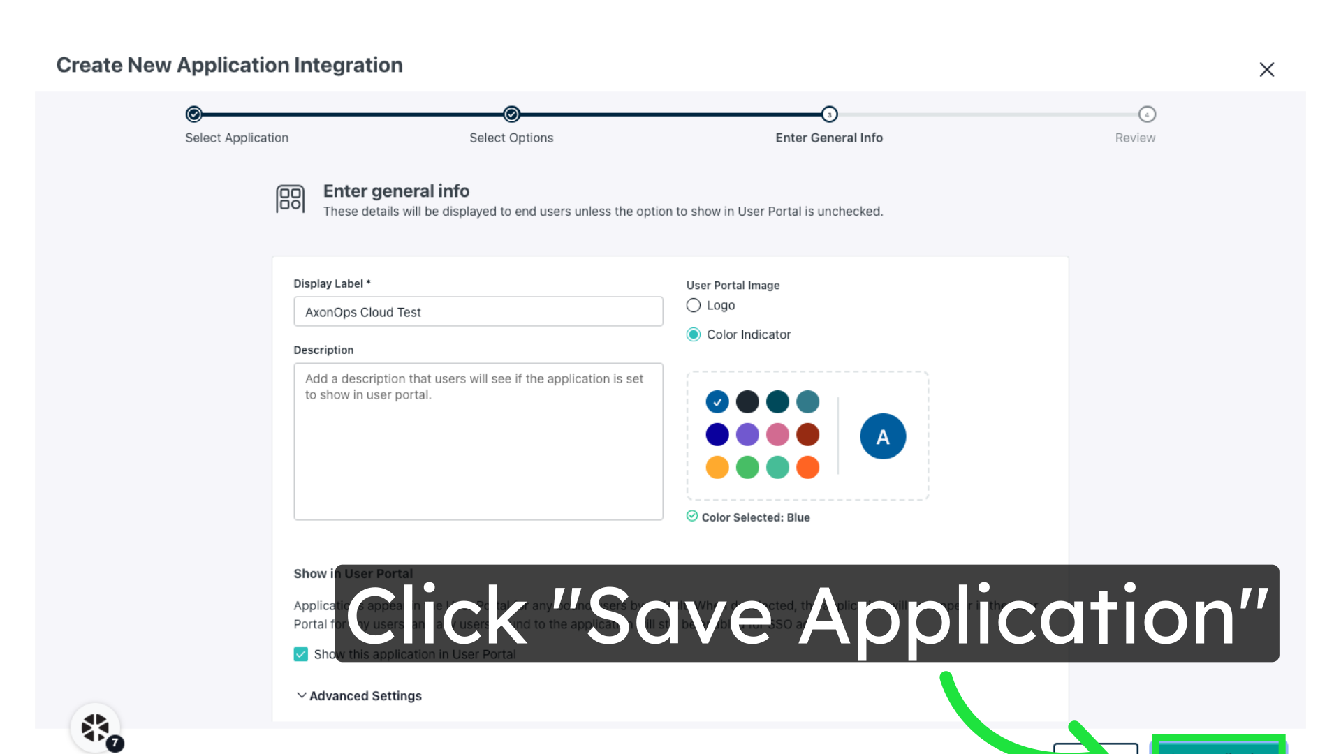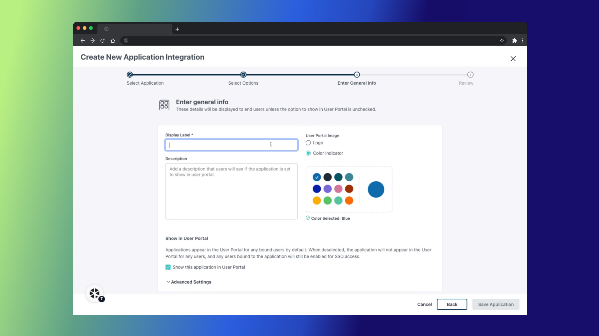 Enter a friendly name for the application in the Display Label field