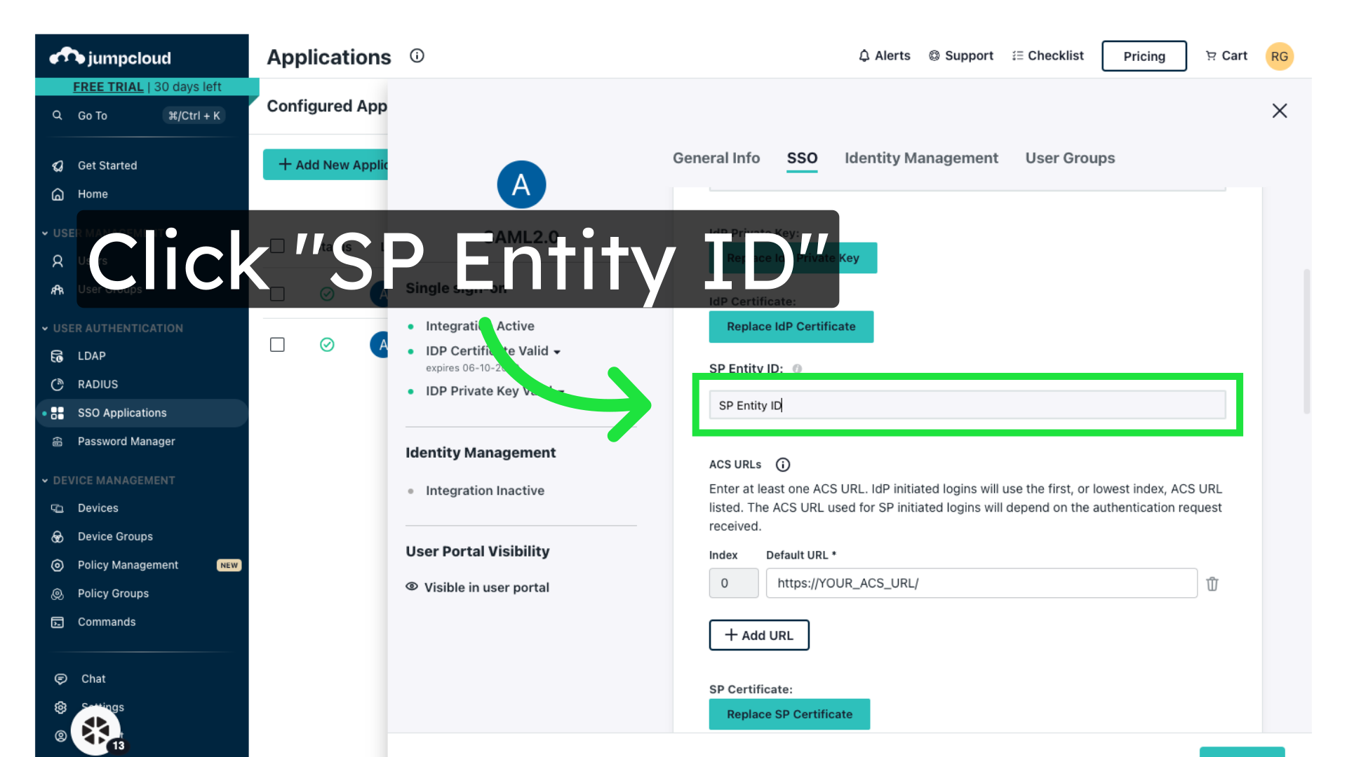 12. Click "IdP Entity ID"¶