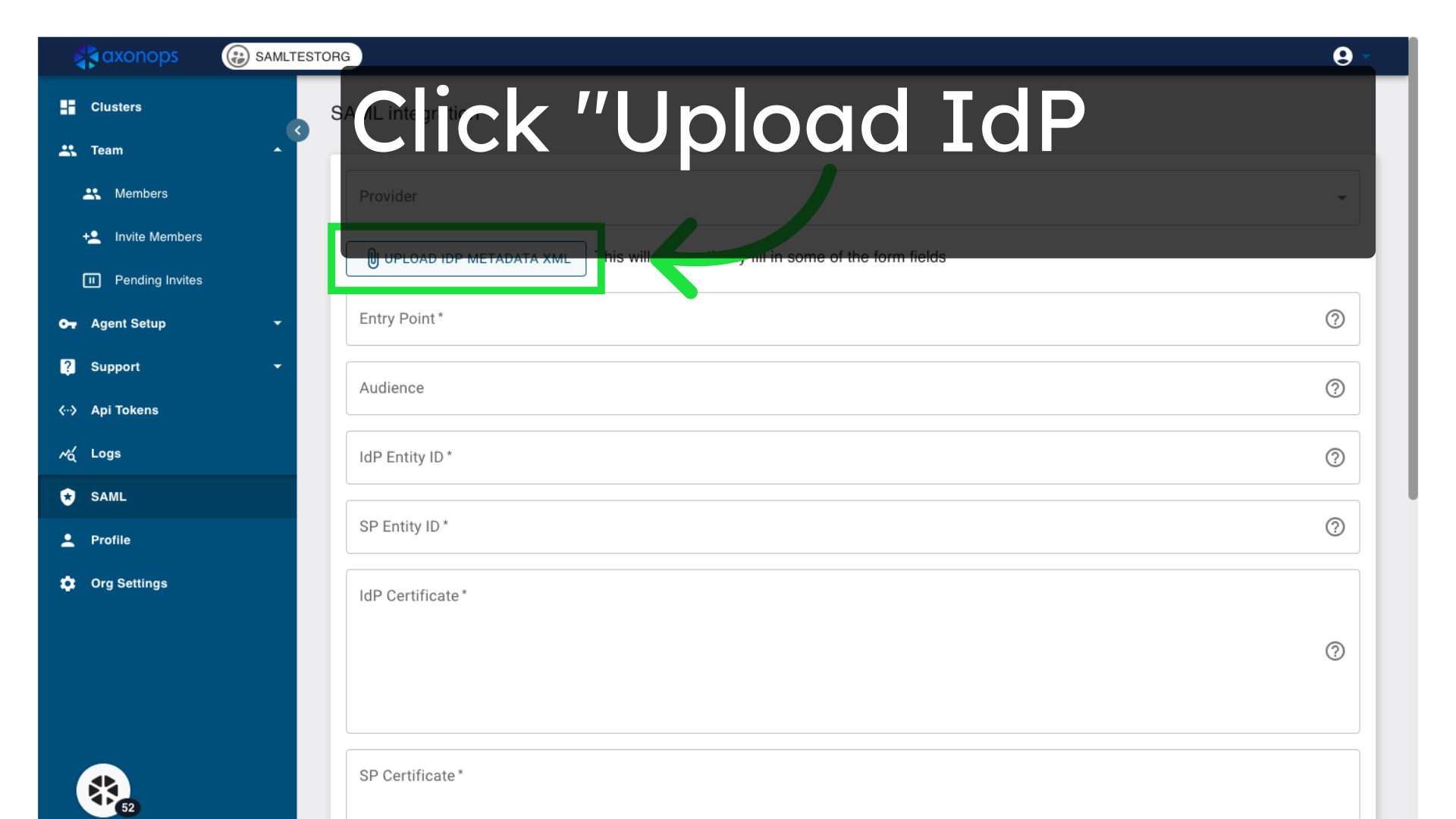 Enter https://axonops.com/saml/metadata in the SP Entity ID field