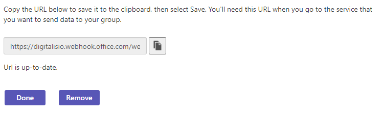 Enter a name, copy the url in the Webhook URL field, and select Create.