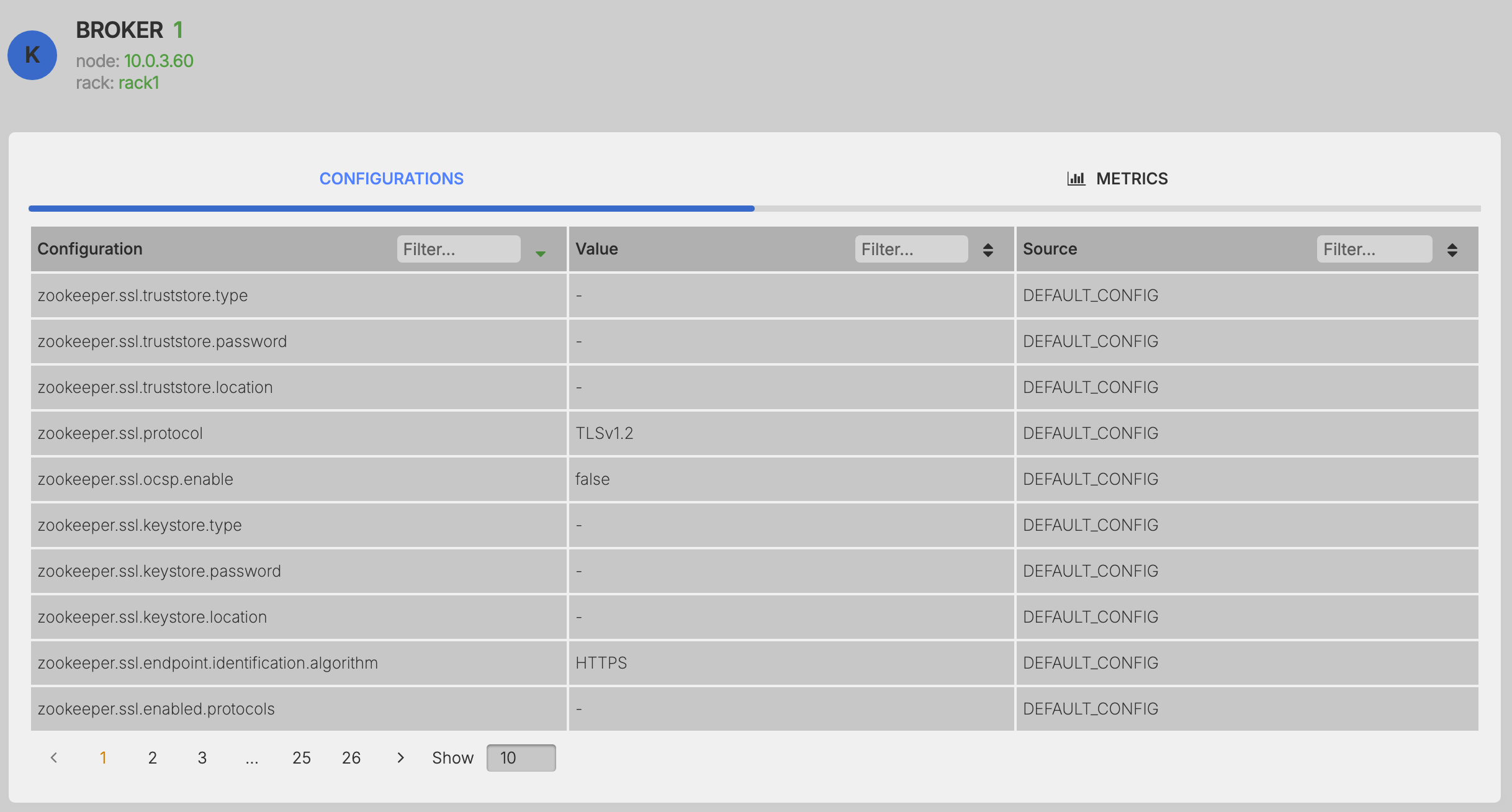 Access and view all the configurations settings. This cannot be changed or updated from the UI and needs to be updated on the Broker configuration file.